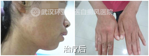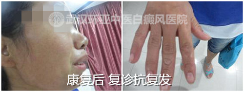 患者案例:患者面部、双手白斑一个多月,在当地医院按照过敏性皮炎来治疗,导致白斑扩散,来我院检查,确诊为白癜风。