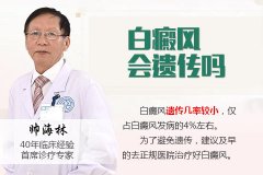 白癜风遗传吗?这是很多还未生育或将要生育的患者最为担心的一个问题! 武汉环亚白癜风医院帅海林主任指出: 白癜风是有一定遗传几率的。但比率较小,仅占白癜风发病的4%左右。 您的家庭有白癜风病史吗?是否检查过身上白斑症状? 白癜风与遗传的关...【阅读全文】
