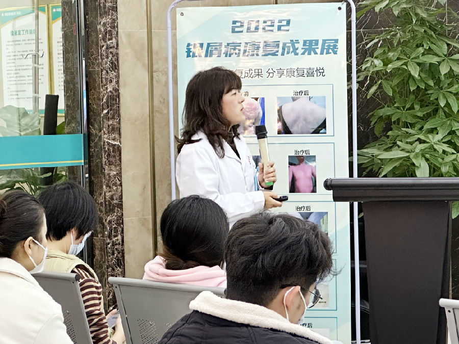 同时为把握寒假治疗机会,我院同时于候诊大厅举行了《2022年度银屑病康复成果回顾》及《冬季白癜风精细化诊疗》名医大讲堂。旨在对冬季想要康复的患者,予以更多直观系统的科普。
